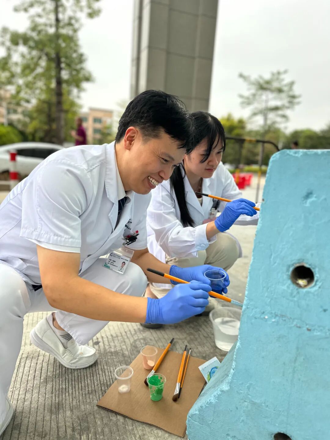 “彩绘医景,共筑健康梦”,这场看似简单的美化活动,实则是医院文化建设的创新实践,更是对 “健康中国” 理念的生动诠释。医院从来不止是治病救人的场所,更是守护生命尊严、培育健康理念、传递人文温度的精神阵地。通过彩绘石墩这一独特载体,我院将医学精神、人文关怀与健康科普深度融合,让每一位走进院区的人,都能在步履之间感受生命的力量,在眼之所及体悟健康的美好。这抹跃动的色彩,终将成为医患同心的见证,让温暖与健康在院区生生不息。